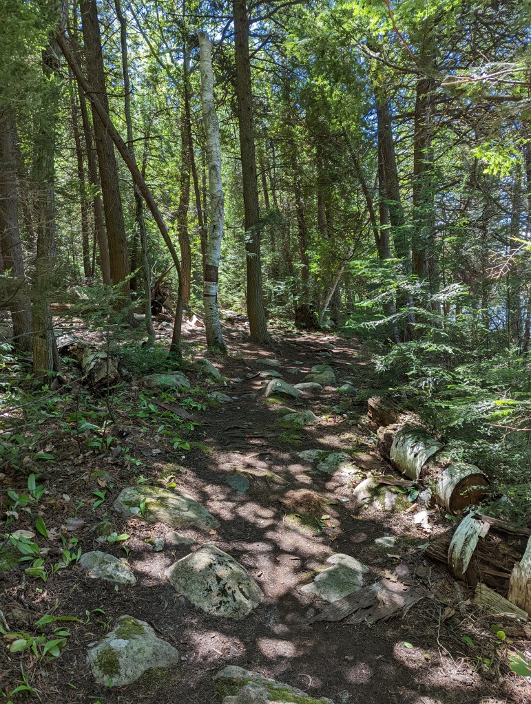Continuing on our journey, Tuesday morning we left the marina. We headed for one of the islands in Georgian Bay, Beausoleil Island. Which the whole thing is a National Park. There were several hiking trails we wanted to check out. The first one was supposed to lead you to a light house. It was a very beautiful trail, pretty forest along the water. But it ended up being more of a light tower. Metal scaffolding with a light box on top. Not particularly charming.