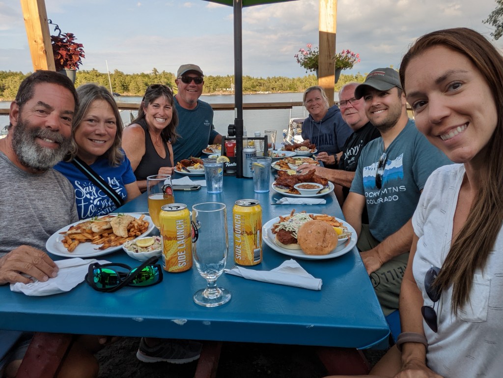 Friday the wind and current were particularly rough. The anchor came loose and we started freely drifting in the water. ๐ฏ It was a scramble to get the anchor up and reposition the boat. We decided to move entirely to a different spot across the bay that would hopefully be less affected by the wind. Don also tied our stern to shore so the boat wouldn’t swing as much. The group decided to try the fire pit in evening after the wind died down a bit. There were several boats rafted together near our new spot that had a dance party going well into the night. The music was good at least, but it’s hard to fall asleep to Pump up the Jam.