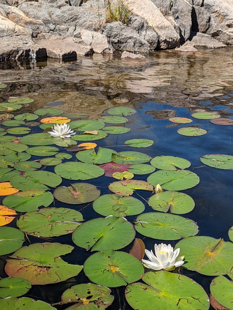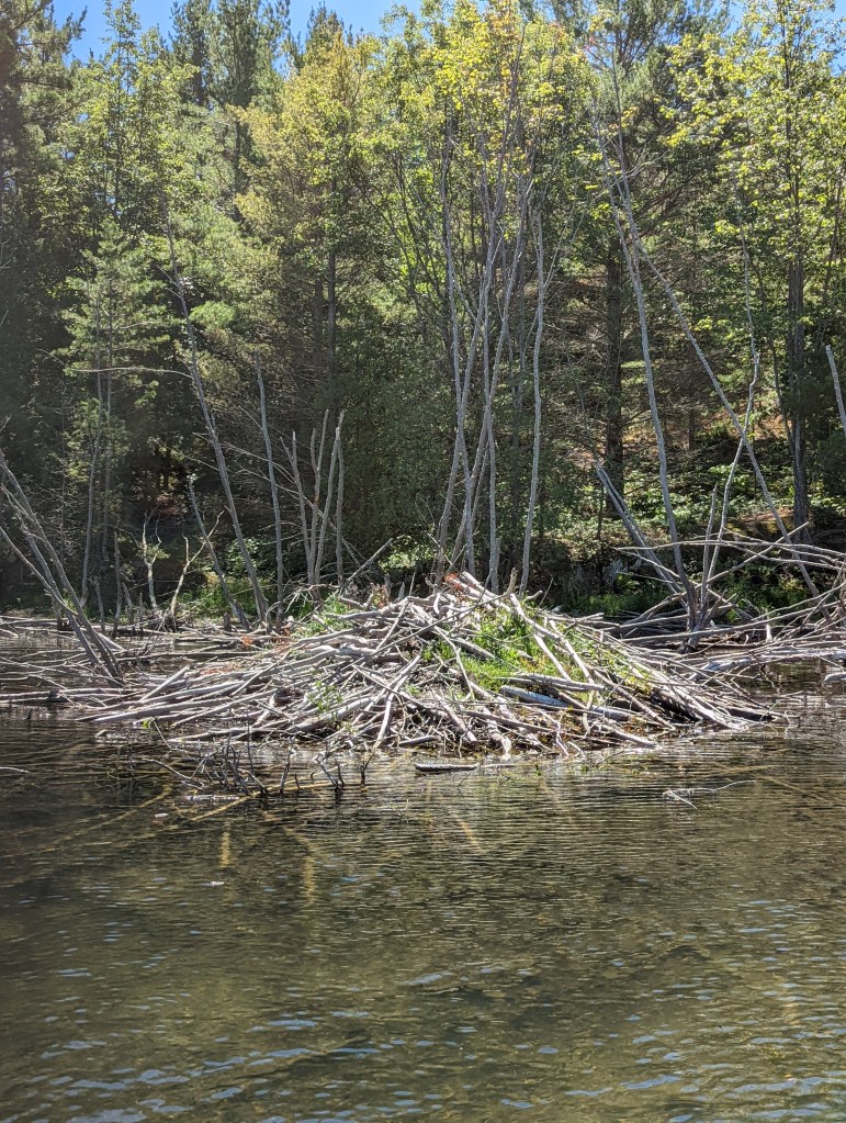 Tuesday, New Adventure let us know they were all fixed up and ready to continue on. We met them at another anchorage on the North side of Long Point further up the North Channel. It was a very cool spot, almost completely surround like a bowl. There were several beaver lodges and different pretty water flowers.