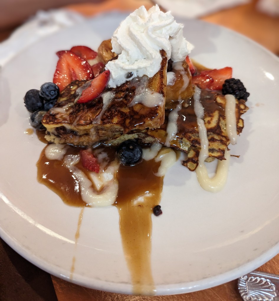 Friday we found another Another Broken Egg Cafe. The first one we came across was in Chicago. This one though had crab cakes eggs Benedict which were just delicious! Don got croissant french toast that was also quite fantastic.