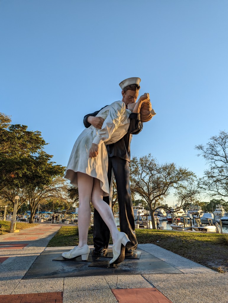 On the way back along the road side of the marina was a giant statue of the famous WWII Time Square Square kiss photo.