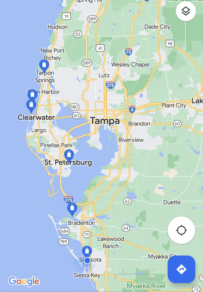 We came back to the boat to grab the backpacks and then walked to Publix to reprovision. We needed to make our way to a boat yard in Bradenton to have the stern thruster looked at again. Where it wouldn’t work before, now it goes on its own even with the power off ๐ค.
